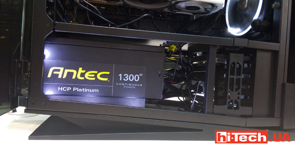 Один из трех отсеков корпуса выделен преимущественно для блока питания (в данном случае — топовая модель Antec HCP-1300 Platinum)