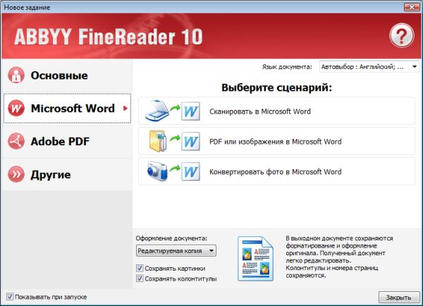 ABBYY FineReader 10 имеет множество предустановленных сценариев, что, безусловно, упростит работу начинающим пользователям