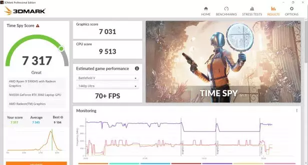 Ввиду высокой необходимости охлаждать компоненты, видеокарта работает не на полную мощность. В играх и бенчмарках показатели получились несколько ниже нормы стандартной RTX 3060. Тем не менее, частота кадров стабильная и не падает со временем.