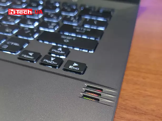 Создать комфортные для мощных компонентов температурные условия внутри тонкого корпуса игрового ноутбука вообще то задача не из простых. Одним из акцентов, который делают в компании, использование термоинтерфейса процессора с применением жидкого металла. Эксперты уже давно спорят об эффективности применения таких нестандартных веществ, однако важно, что по факту ноутбук действительно не выходит за рамки допустимых температур при работе на максимуме.