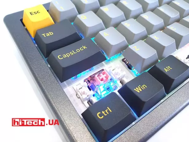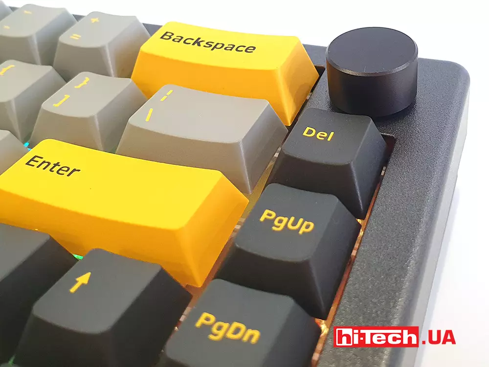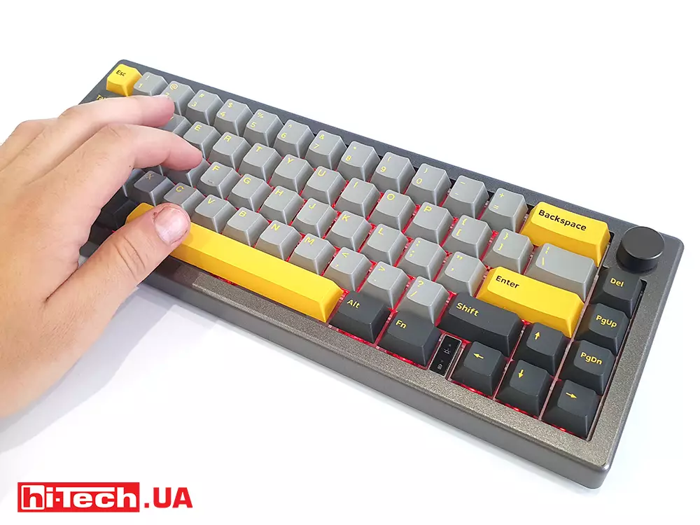 Шайба-энкодер имеет четкие клики при прокрутке. Длинные клавиши как Shift, Enter, Backspace и пробел имеют дополнительные стабилизаторы для равномерного нажатия.