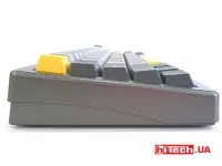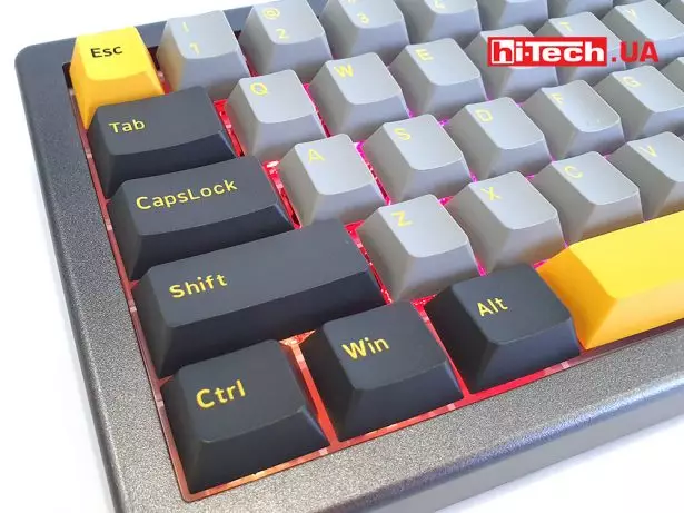 Колпачки клавиш изготовлены из PBT-пластика по технологии Double-shot. Это означает, что при изготовлении пластик выливают под давлением в две разные формы. При этом символы вливаются в одну из форм, за счет чего они четкие и не стираются со временем. В отличие от ABS-пластика, который обычно используется в большинстве клавиатур, PBT – более износоустойчивый и жесткий. Минус технологии PBT заключается в том, что такой пластик относительно толстый. Кейкапы имеют приятную тактильную структуру. Они не должны начать блестеть со временем.