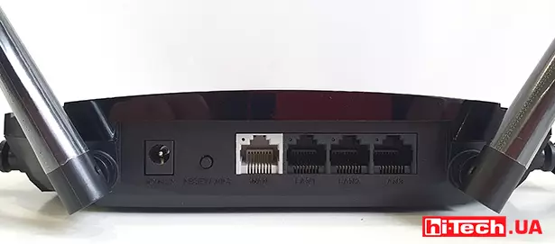 Из индикации есть лишь один зеленый светодиод активности во фронтальной части. Четыре гигабитных Ethernet-разъема выведены на тыльную сторону. Они включают один WAN и три LAN для локальной сети. Рядом есть кнопка перезагрузки, она же, выполняет роль быстрого доступа WPS.