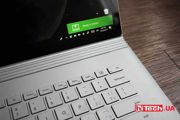 После нажатия кнопки отсоединения, проходит пару мгновений, прежде, чем раздастся еле слышный щелчок и произойдет высвобождение от замков. Визуально крышка слегка сдвинется и останется «висеть» на направляющих. Параллельно Windows на дисплее выведет уведомление. Обратно крышка пристыковывается автоматически, без нажатия кнопки.