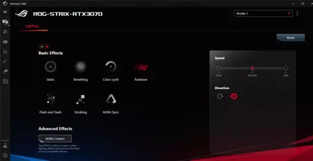 К слову, физической кнопки полного отключения подсветки одним нажатием (режим stealth) на модели ASUS ROG Strix GeForce RTX 3070 нет.
