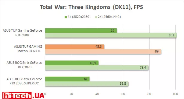 Довольно примечательно, что с ростом разрешения преимущество ASUS TUF GAMING Radeon RX 6800 над NVIDIA GeForce RTX 3070 сокращается и растет отставание от RTX 3080.