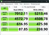 Оперативная память объемом 16 ГБ имеет тип LPDDR5 и это максимально доступный объем, распаянный на матплате. Установлен твердотельный накопитель объемом 1 ТБ формата M.2 с интерфейсом NVMe PCIe 4.0.