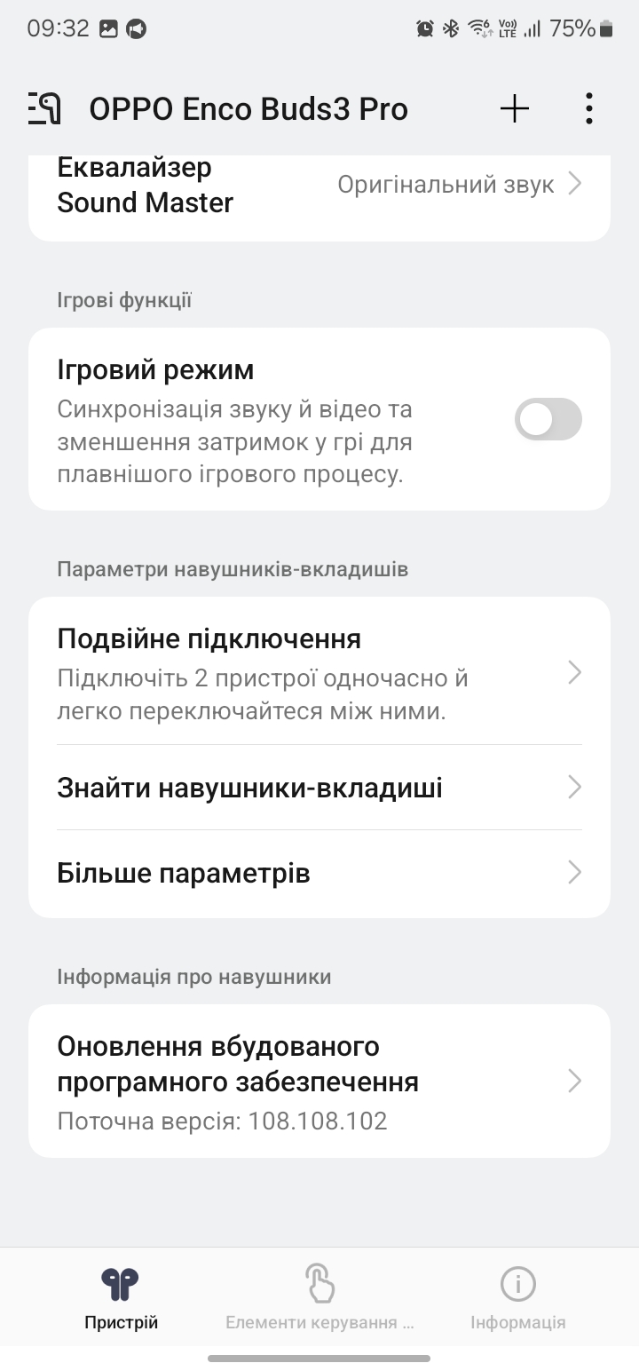 The HeyMelody application, which allows you to view the charge, customize touch zone commands and the Sound Master equalizer. The headphones do not have a digital noise reduction system or, conversely, transparency, so there are no settings for it here.