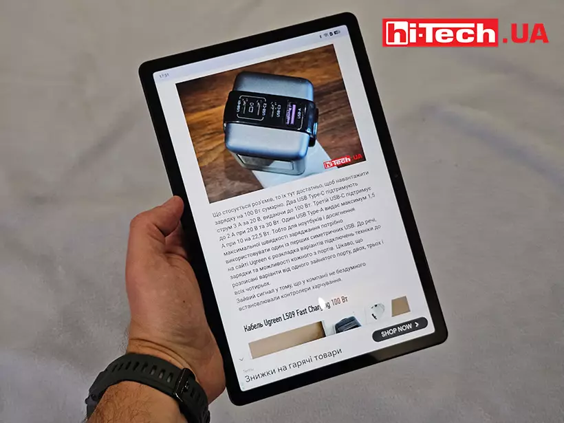 The 11-inch display is based on an IPS matrix and has a resolution of 1920×1200. It is bright, contrasting and with excellent color reproduction. It may not shine with the “honesty” of colors, but it is not required. The display is good for Internet content and video. An increased refresh rate of 180 Hz is supported. So the menus and animations look very smooth. The touch layer is updated at a frequency of 90 Hz and responds well and quickly processes touches.