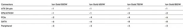 К примеру, базовая модель Fractal Ion Gold мощностью 550 Вт имеет два штекера 6+2 pin для питания видеокарт. Версии на 650 и 750 Вт имеют уже 4 таких штекера, а 850-ваттном БП их 6.