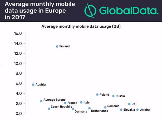 По данным исследования компании GlobalData, среднее ежемесячное потребление интернет-трафика пользователями в Европе, в конце 2017 года, достигнет 2,4 ГБ на одну SIM-карту.