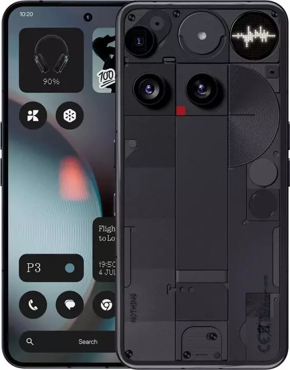 Одним из главных отличий стал обновлённый Glyph Matrix — светодиодный дисплей в виде точечной матрицы на задней панели, заменивший привычные полосы подсветки. Он может отображать уведомления в виде эмодзи, простых пиктограмм, а также поддерживает мини-игры вроде «Камень-ножницы-бумага» и «Бутылочка».