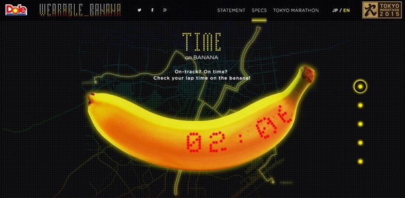 Проект разработан при поддержке японского подразделения компании Dole, дистрибьютора фруктов и овощей. У банана есть 4 функции: часы, таймер, счетчик сердцебиения, вывод сообщений и собственно съестная. Сообщения спортсмену на банан присылаются наблюдателями через Twitter.