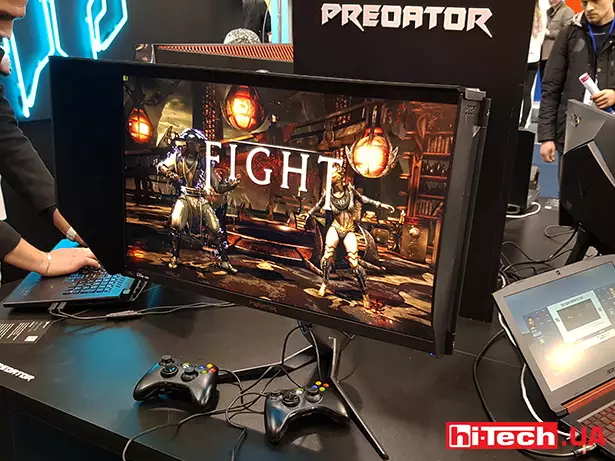 На выставке Acer были показаны интересные модели игровых ноутбуков и мониторов. Так, ноутбук Predator Triton 900 с поворотным дисплеем в верхней крышке впервые был показан на IFA 2018. Он поулчил IPS-дисплей диагональю 17 дюймов, который размещен на фирменном шарнирном креплении Ezel Aero Hinge. Экран имеет разрешение 3840 × 2160 и поддерживает сенсорный ввод. Устанавливается процессор Intel Core i7 восьмого поколения с шестью вычислительными ядрами. Используется дискретный ускоритель NVIDIA GeForce RTX 2080.