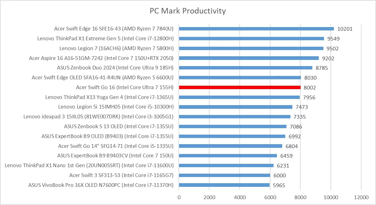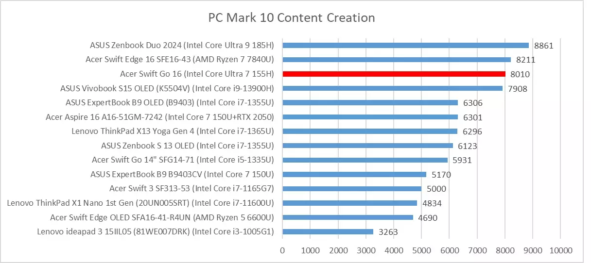 Ноутбук Acer Aspire 16 A16-51GM-7242 можна назвати чудовим рішенням нижнього середнього класу. Для роботи та базових завдань з візуалізацією він впорається. При цьому є низка як нових рішень, так і, можливо, морально застарілих. Але не можна сказати, що він слабкий або щодо комплектуючих відверто дешевий. Це якісно продумане рішення. Сучасна відеокарта не зробила б із нього ігровий ноут, як і потужніший ЦПУ відібрав би козирі автономності. Тут же знайдено певний баланс. Якщо подивитися на гістограми, видно, що він залишає позаду велику кількість набагато дорожчих ноутбуків, де упор зроблений на екрани з обсягами пам’яті.