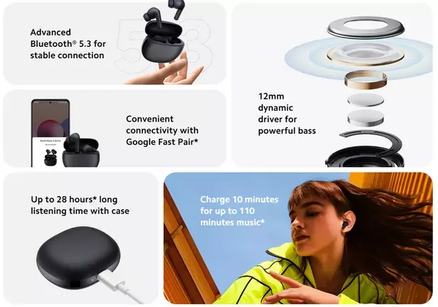 Дотиком до корпусу можна приймати / скидати дзвінки та керувати відтворенням музики. Для підключення до смартфонів навушники використовують протокол Bluetooth 5.3.